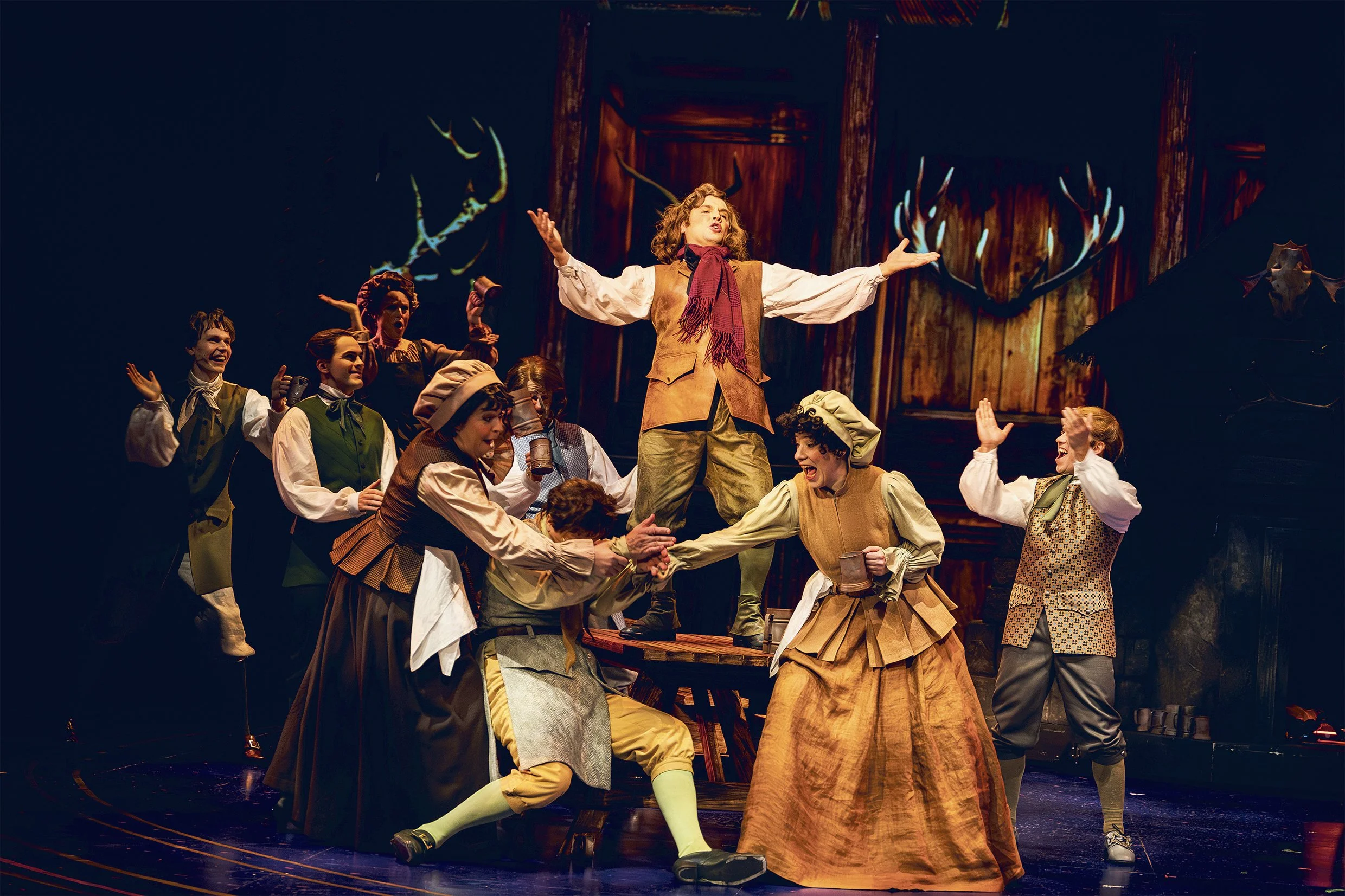 Jari Saarelaisen koreografia oli yksi illan kohokohdista. Ensemble tekee huikeaa työtä ja liike on täynnä energiaa. Lavastus (Peter Alhqvist), puvustus (Pirjo Liiri-Majava) ja naamiointi (Emmi Puukka) luovat yhdessä maagisen maailman, joka tuntuu aidosti elävältä. Erityismaininta Joni Pakaselle illuusioista – Hirviön transformaatio oli niin vaikuttava, että en muista milloin viimeksi teatteritaika olisi päässyt yllättämään tällä tavalla. Eero Auvisen valosuunnittelu tukee tätä kaikkea hienosti.